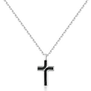Collana in acciaio 316L con pendente a forma di croce e smalto nero.