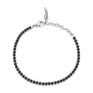 Bracciale tennis in acciaio 304 e cubic zirconia neri con pendente chiusura con cornetto portafortuna.