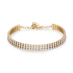 Bracciale tennis in acciaio 304, finitura pvd oro 14K e cubic zirconia.