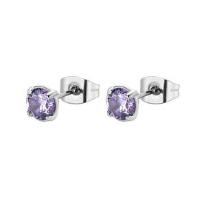 Orecchini a lobo in acciaio 304 e cubic zirconia colore amethyst.