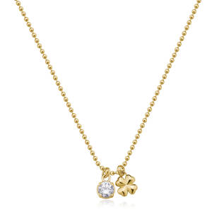 Collana girocollo in acciaio 304 e finitura pvd oro 14K con cubic zirconia e pendente a forma di quadrifoglio.