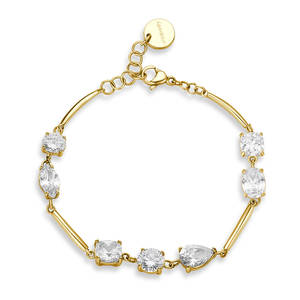 Bracciale semirigido in acciaio 316L e finitura pvd oro 14K con cubic zirconia.