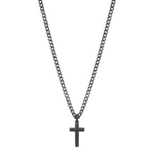 Collana in acciaio 316L e finitura pvd colore rutenio con pendente a forma di croce.