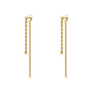 Orecchini pendenti lunghi in acciaio 316L e finitura pvd oro 14K.