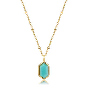 Collana girocollo in acciaio 316L, finitura pvd oro 14K e pendente con amazzonite.