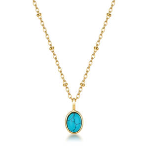 Collana girocollo in acciaio 316L, finitura pvd oro 14K e pendente con turchese ricostruito.