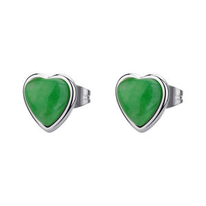 Orecchini a lobo in acciaio 316L con giada verde.