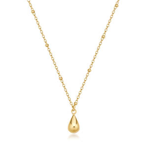 Collana girocollo in acciaio 316L, finitura pvd oro 14K con pendente a goccia.