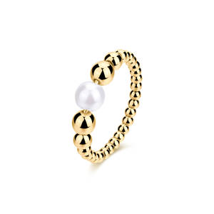 Anello in acciaio 316L e finitura pvd oro 14K con perla di conchiglia.