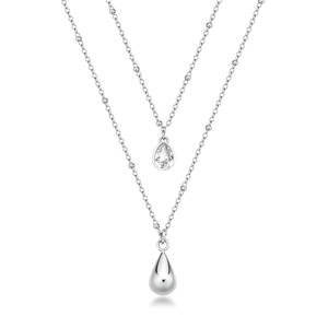 Collana girocollo in acciaio 316L a doppio filo con pendente a goccia e cristallo.