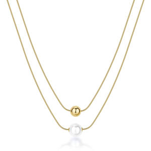 Collana PERFECT in acciaio 316L, finitura pvd colore oro, a doppio filo con pendente a sfera e perla di conchiglia