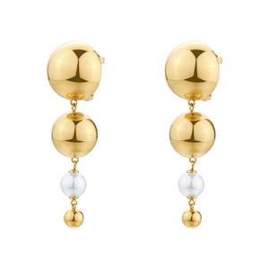 Orecchini pendenti PERFECT in acciaio 316L, finitura pvd colore oro, con sfere e perle di conchiglia