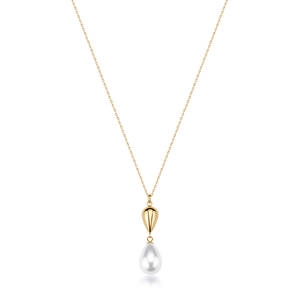 Collana PERFECT in acciaio 316L, finitura pvd colore oro, con perla di conchiglia e pendente a goccia