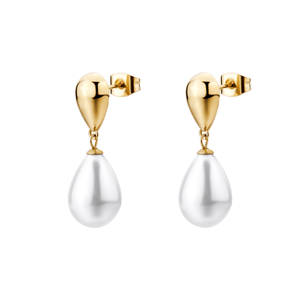 Orecchini pendenti PERFECT in acciaio 316L, finitura pvd colore oro, con perle di conchiglia