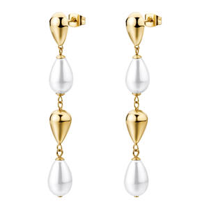 Orecchini pendenti PERFECT in acciaio 316L, finitura pvd colore oro, con perle di conchiglia