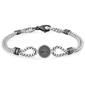 Bracciale in acciaio 316L e finitura pvd colore rutenio con rosa dei venti e madreperla sul retro.