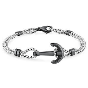 Bracciale in acciaio 316L e con finitura pvd colore rutenio e simbolo a forma di ancora.