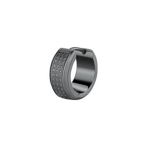 Orecchino singolo a cerchio in acciaio 316L lucido e sabbiato con finitura pvd colore rutenio.