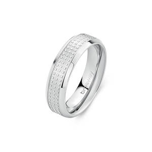Anello a fascia stretta in acciaio 316L lucido e sabbiato.