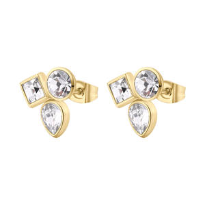 Orecchini al lobo in acciaio 316L e finitura pvd oro 14K con cristalli.