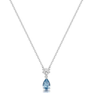 Collana girocollo in argento rodiato 925‰ e pendente con square cubic zirconia e pear cubic zirconia colore light sapphire.