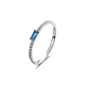 Anello in argento rodiato 925‰ con cubic zirconia chiari e cubic zirconia colore sapphire.