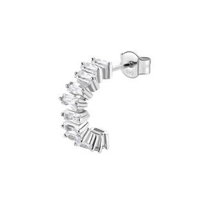 Orecchino singolo a cerchietto in argento rodiato 925‰ con baguette cubic zirconia.