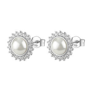 Orecchini a lobo Kate in argento rodiato 925‰ con perle di conchiglia e cubic zirconia.