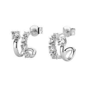 Orecchini a cerchio in argento rodiato 925‰ con cubic zirconia.