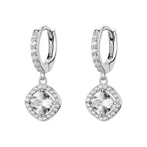 Orecchini a cerchio in argento rodiato 925‰ e pendenti con cubic zirconia.
