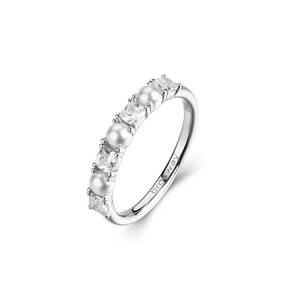 Anello in argento rodiato 925‰ con perle di conchiglia e cubic zirconia.