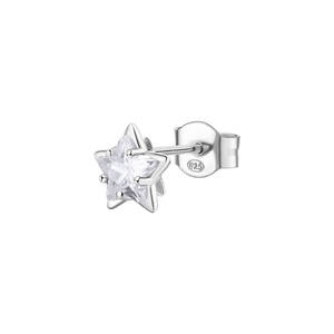 Orecchino singolo a lobo in argento rodiato 925‰ a forma di stella con cubic zirconia.