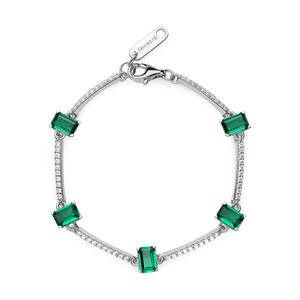 Bracciale semirigido in argento rodiato 925‰ con cubic zirconia chiari e baguette cubic zirconia colore emerald.