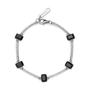 Bracciale semirigido in argento rodiato 925‰ con cubic zirconia chiari e baguette cubic zirconia neri.
