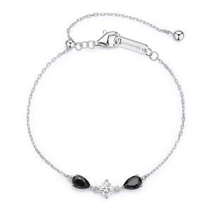 Bracciale tiralaccio in argento rodiato 925‰ con square cubic zirconia e pear cubic zirconia neri.
