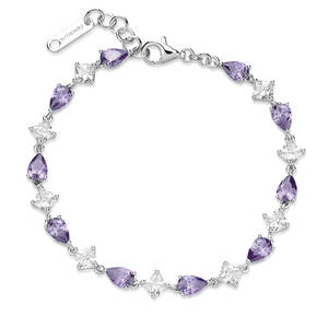 Bracciale in argento rodiato 925‰ con square cubic zirconia e pear cubic zirconia colore amethyst.