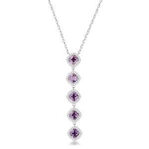Collana girocollo in argento rodiato 925‰ e pendente con cubic zirconia chiari e cubic zirconia colore amethyst.