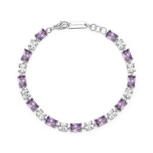 Bracciale in argento rodiato 925‰ con cushion cubic zirconia chiari e baguette cubic zirconia colore amethyst.