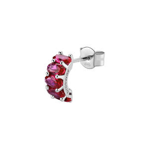 Orecchino singolo a cerchietto in argento rodiato 925‰ con oval cubic zirconia colore ruby.