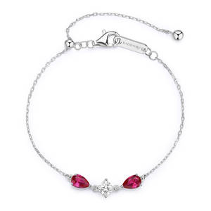 Bracciale tiralaccio in argento rodiato 925‰ con square cubic zirconia e pear cubic zirconia colore ruby.