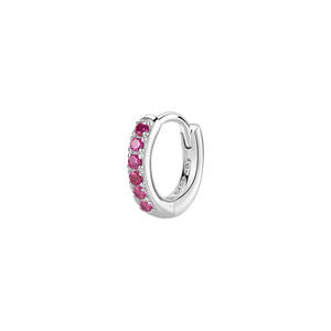 Orecchino singolo a cerchietto in argento rodiato 925‰ con cubic zirconia colore ruby.