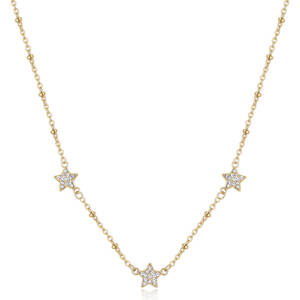 Collana girocollo in acciaio 316L e finitura pvd oro 14K con stelle e cristalli.