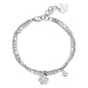 Bracciale doppio filo in acciaio 316L con pendente a forma di fiore e cristalli.