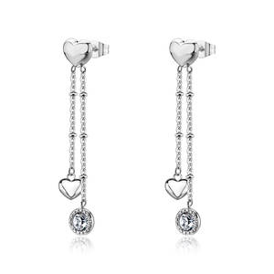 Orecchini pendenti in acciaio 316L con cuori e cristalli.