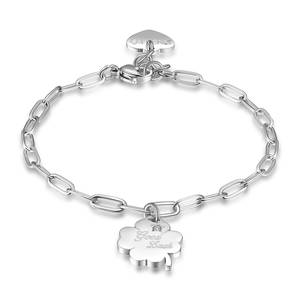 Bracciale in acciaio 316L con ciondolo a forma di quadrifoglio con incisione e cristallo.