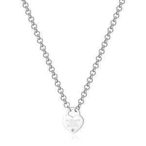 Collana girocollo catena forzatina in acciaio 316L con pendente a forma di cuore, incisione e cristallo.