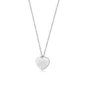 Collana girocollo in acciaio 316L con pendente a forma di cuore, incisione su fronte a forma di albero della vita e scritta incisa sul retro.