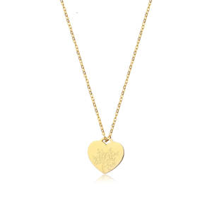 Collana girocollo in acciaio 316L e finitura pvd oro 14K con pendente a forma di cuore, incisione su fronte a forma di albero della vita e scritta incisa sul retro.
