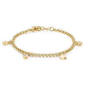 Bracciale in acciaio 316L, finitura pvd oro 14K con stelline e cristalli.