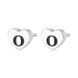 Orecchini a lobo a forma di cuore in acciaio 316L con lettera O e smalto nero.
